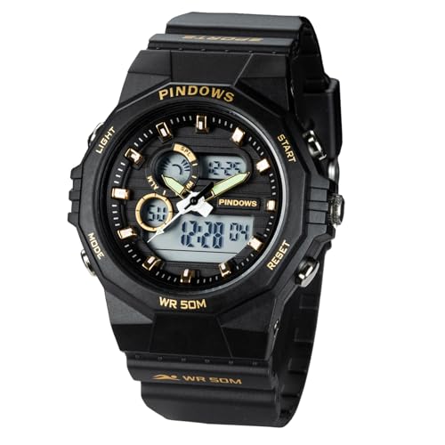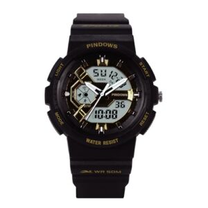 PINDOWS女性用腕時計は50M防水、アウトドア向けデジタルスポーツウォッチ。多機能でLEDバックライト、カレンダー、アラーム、ストップウォッチ搭載。
