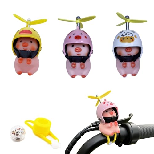 可愛い豚デザインの自転車ライト3点セット。ヘルメット付きでプロペラ搭載、点滅機能あり。ゴム製で柔らかく、おしゃれなデザインが魅力。簡単に設置でき、子供や大人に最適な自転車の飾り。