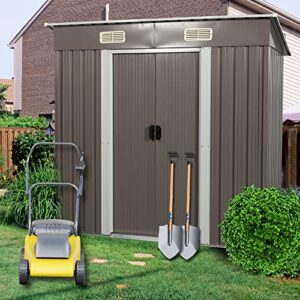 BNSPLY 物置 屋外 大型倉庫 高さ190cm 防錆防水アウトドア収納小屋 3700L大容量 4つ換気口/施錠可能/引き戸タイプ ガーデン/庭/田畑/メタルシェッド 園芸用品/ツール/タイヤ ブラウン【可動棚なし】