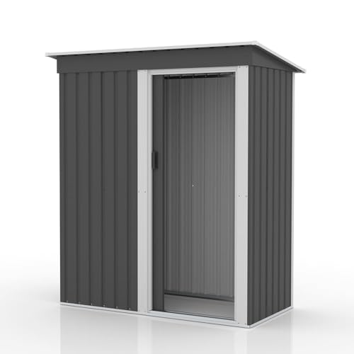 BTYJLEBE 屋外収納ボックス 物置 屋外 大型 【排水に役立つ屋根 | 施錠可能 | 排換気口が付き | 衝撃に強く凹凸壁面 | 床材補強フレーム付き】 防さび 防錆 耐侯 防水 ドア 引戸 倉庫 物置 家 ベランダ 収納 庭 戸外 ガーデニング グレー