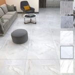 Futlfosフロアタイルは大理石調のPVC製で、厚さ1.2mmの防水・防汚仕様。耐久性が高く、土足OK。DIYセルフリフォームに最適な大判60*60cmで、接着剤付き。ペットにも対応し、玄関や廊下に最適です。