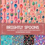 Brightly Spoonsのスクラップブックペーパーは、ジャーナリングやデコパージュ、ペーパークラフトに最適な装飾素材です。DIYプロジェクトを華やかに彩ります。
