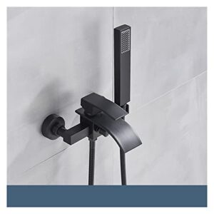 浴室水栓 マットブラックバスルームバスタブ蛇口シャワーホットスイート水ミキサータップ壁掛けバスタブ蛇口 キッチン・バス備品 (Color : Matte Black A)