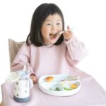 離乳食エプロンは、長袖デザインでさらさら生地を使用。マジックテープ調節が可能で、成長に合わせて長く使える。BLW対応で手づかみやスプーン練習にも最適。片付け簡単、丸洗いOKの一体型お食事エプロンです。
