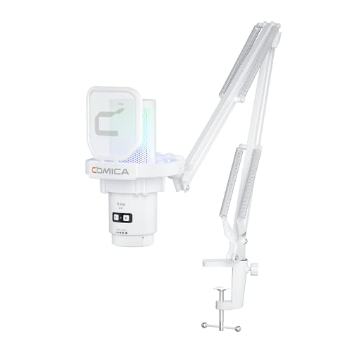 Comica USBコンデンサーマイクは、単一指向性でノイズ軽減機能、RGBライティング付き。ワンタッチミュートあり。Windows/Mac/PS4/PS5/iPhone/iPad対応のゲーミング用マイクセット。