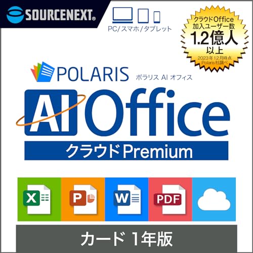 ソースネクストのPolaris AI Office クラウド Premiumは、Microsoft Officeと高い互換性を持つオフィスソフト。Excel、PowerPoint、Word、PDF対応で、Win、Mac、iOS、Androidのマルチデバイスに対応しています。