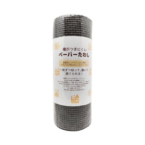 傷がつきにくいペーパーたわし、スポンジ式の使い捨て食器洗い用品。キッチンや衛生的な水回り、お風呂場にも最適。約20×15cmサイズで、25枚入り、グレー色です。
