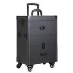 大容量の多層ユニバーサルホイールネイルアートツールボックス。プロ用メイクボックス、ロック付きで収納力抜群。ポータブルで使いやすいデザイン(ブラック)。