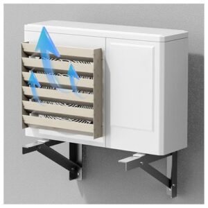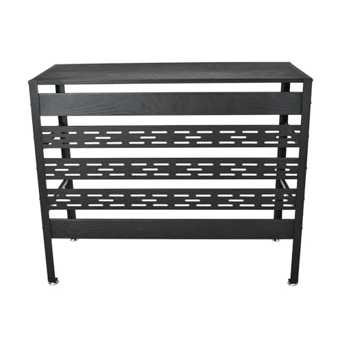 雑貨の国のアリスの室外機カバーは、エアコンの外部機器を保護し、おしゃれなデザインで雪や紫外線から守ります。DIYで簡単に組立可能で、多肉棚としても利用できるラック機能付き(ブラック)です。