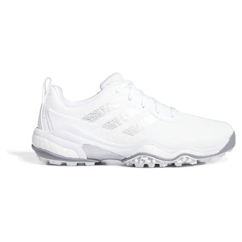 アディダスゴルフのゴルフシューズ、コードカオス 25はメンズ用で、カラーはフットウェアホワイト/シルバーメタリック/グレーツー。サイズは26.5 cm、幅は2Eです。快適さとパフォーマンスを両立した設計です。