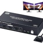 ELEVIEW KVMスイッチ EHD-922Nは、HDMI 2.1をサポートし、2台のPCと2台のモニターを接続可能。8K60Hz及び4K120Hzに対応し、USB3.0接続でキーボードとマウスを共有しやすい手元スイッチ付きです。