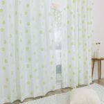 カエイレースのミラーレースカーテンは、日本製で144サイズ。花柄デザイン、厚め生地で断熱・遮熱効果あり。UVカット、昼夜目隠しにも適し、子供部屋にぴったり。サイズは巾150cm×丈128cm、グリーンカラー。