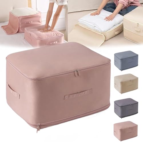 ふとん圧縮袋・圧縮ボックスは衣類や羽毛布団の収納に最適。押さえベルトで簡単収納、スペース約40%節約。おしゃれなピンクデザインで季節転換や引越しに役立つ整理用品です。サイズは52x42x60cm。