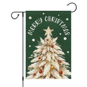 Louise Maelys メリークリスマス ガーデンフラッグ 12×18インチ クリスマスツリー 両面 小黄麻布 冬 ハウス 庭 旗 ホリデー 屋外 装飾 (フラグのみ)