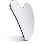 UTTKAC(さわ)のステンレスGua Shaツールは、フェイシャルやネックマッサージに最適。引き締め効果があり、スキンケアに役立ちます。便利なトラベルポーチ付きで、ハートモデルデザインが特徴です。