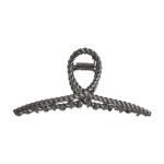 NAKANOYAのバンスクリップは、金属合金製で中くらいのサイズ(M)です。ツイストデザインで光沢があり、洗練されたガンメタル仕上げ。髪をしっかり固定し、スタイリッシュなアクセントを加えます。