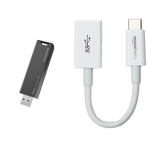 IODATAの1TB外付けSSDは、グレー×ブラックで小型・ポータブル。高速USB 3.2 Gen 2対応、テレビ録画やPS5/PS4に適し、アダプター付きで便利。