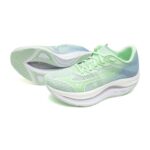 ミズノのウエーブリベリオン フラッシュ 2は、軽量で厚底のランニングシューズ。反発力が高く、ジョギングやマラソン、トレーニングに適しています。女性向けのミントグリーン×ホワイトデザイン、サイズ22.5 cm、幅2E。