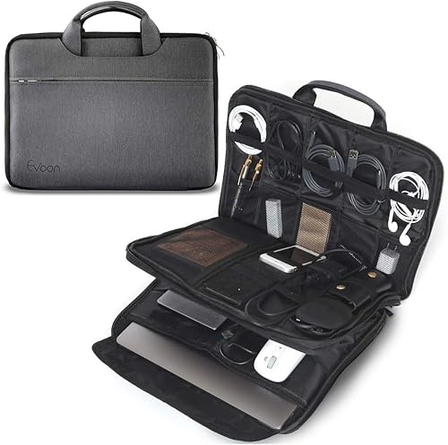 Evoonマルチパソコンケース2.0は、13-13.3インチノートパソコンに対応したグレーのガジェットポーチです。バックインバックとして使える便利なデザインで、収納力も優れています。