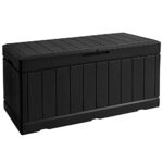 HOMECOの378L大容量物置は、幅123cm、奥行57cm、高さ62cmで、屋外やベランダの収納に最適です。おしゃれなブラックデザインで、アウトドア収納にも対応。