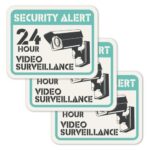 SignStoreのアメリカン風デザイン防犯カメラステッカーは、3枚セットでサイズは6cm×7.5cm。オリジナルでおしゃれな外観、屋外使用に適したかわいい標識です。日本製で、レトロなライトグリーンが特徴。