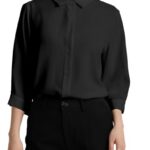 YASHIGEの七分袖シャツは、洗える無地のブラウスで、ビジネスにもカジュアルにも適しています。ストレッチ性があり、体型カバーも可能。ゆったりした大きいサイズで、通気性が高く、ノーアイロンで手入れも簡単。色はブラック、サイズは4Lです。