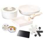 吉道フライパンセット8点は、IH・ガス火対応で、急速解凍プレート付き。18cmと26cmのフライパン、卵焼きパン、取っ手が取れる設計。簡単に手入れでき、収納マットとスポンジも含まれ、調理が楽に行えます。