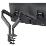 LOE デュアルモニターアーム LOZ2は、ガススプリング式のデスクマウントで、2画面のディスプレイをサポートします。カラーはグレーで、調整が容易で快適な作業環境を提供します。