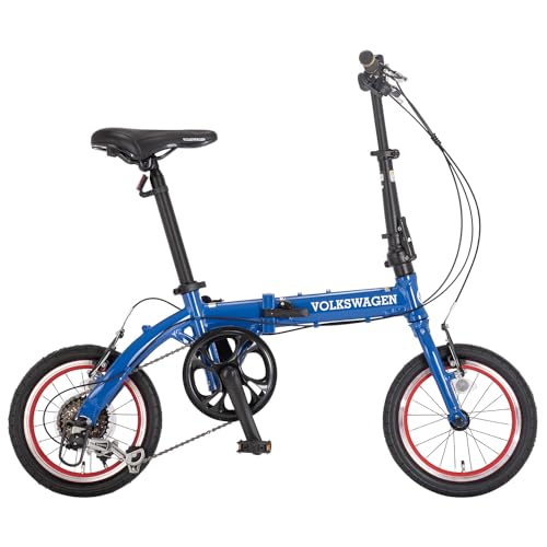 フォルクスワーゲンの14インチ折りたたみ自転車VW-FDB146ALは、軽量アルミフレームとシマノ6段変速を搭載。街乗りに最適なネイビーカラーで、持ち運びも便利です。