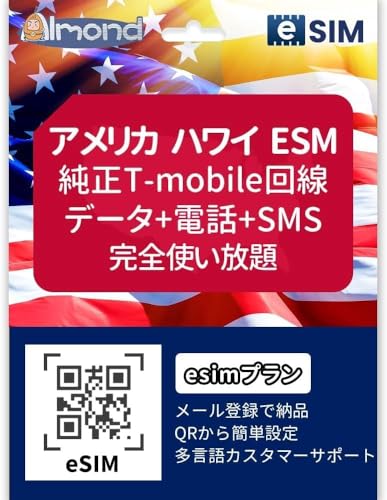 アメリカ ハワイ用の純正T-mobile回線eSIM。9日間、高速データ通信無制限、アメリカ現地通話無制限が利用可能。旅行者向けに最適なSIMカード。
