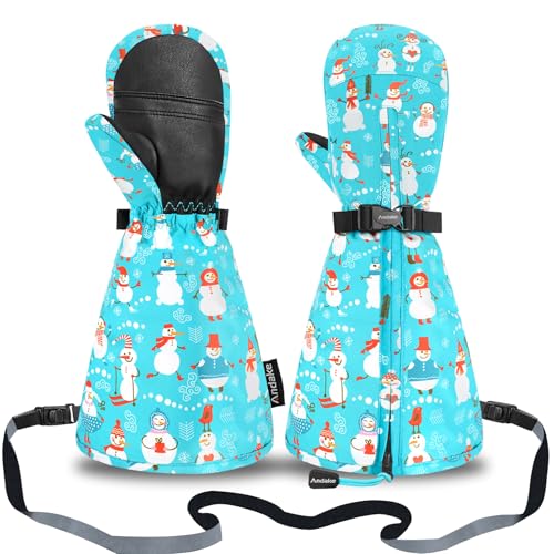 Andake子供用スキー ミトンは、1〜6歳の男女向けの防水・暖かい長款手袋です。ジッパー付きで着脱が簡単、雪遊びに最適。