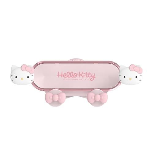 ハローキティの車載スマホホルダー。エアベントに取り付け可能で、iPhoneやAndroid対応。可愛いデザインでカーアクセサリとしても最適。
