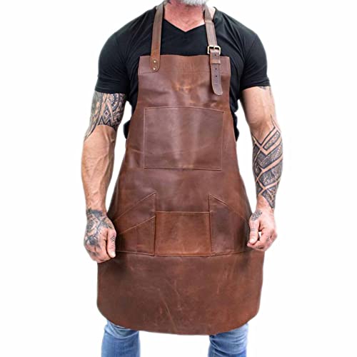 AZAZFCの溶接エプロンは耐熱性・難燃性の牛革製。プロメカニックや木工に最適で、ポケット付き。サイズは85*60CMです。