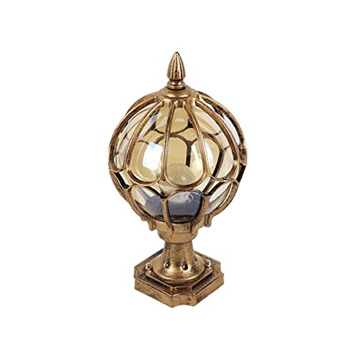 屋外用の防水グローブ型ポストライト。クラシックなデザインでガーデンやエクステリアに最適。高耐久性で、風景を美しく照らします。ブロンズカラー、小サイズ。