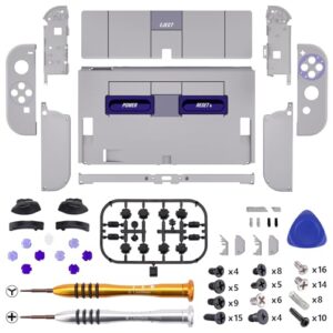 本体ではない-eXtremeRate switch oledに対応用パターン柄バックプレート&金属スイッチ 背面スタンド、switch 有機elに対応用スイッチ ジョイコンハンドヘルドコントローラーハウジング、キックススタンドとフルセットボタンが付き【クラシックSNES】
