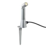コイズミ照明のLEDエクステリアスパイクスポット(AU55799)は、差込プラグ付きで耐塩仕様。サテンシルバーの美しいデザインで、電球色のライティングが特徴です。アウトドアでの使用に適しています。