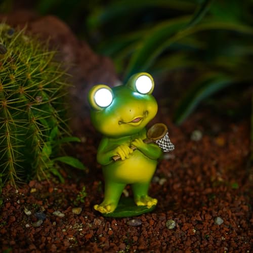 LYFJMUSのソーラーカエルガーデンスタチューは、かわいらしいミニチュアデザインで、屋外のパティオや庭を飾ります。樹脂製で、ガーデニングギフトにも最適です。