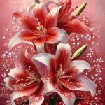 油絵数字キット、初心者向けのDIYアートです。指定された番号に従って塗ることで、完成度の高い赤いユリの花の作品が楽しめます。フレームレスでインテリアに最適な壁飾り、ギフトにもおすすめ。