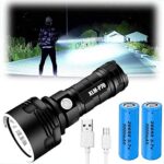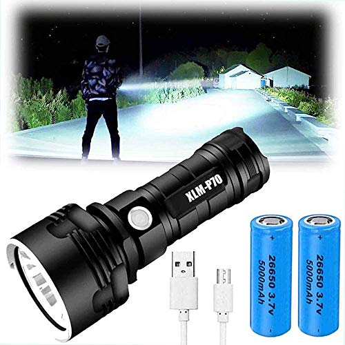 / 【高輝度モデル】30000-100000ルーメン LED懐中電灯 超強力 ハンディライトUSB充電式 50W XLM-P70 フラッシュライト 強力軍用懐中電灯 3モード調光 アルミニウム合金ボディ 耐衝撃 新型 ledライト 明るい IPX-67 防水 防災 地震 停電対策 自転車 登山 夜釣り(大容量26650リチウム電池付き、USBケーブル) (50W XLM-P70, 2つのバッテリー)