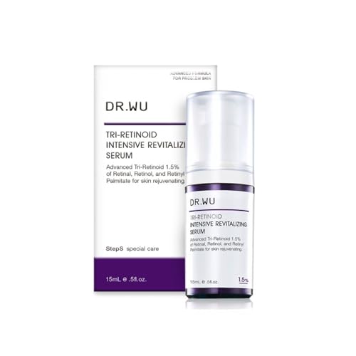 DR.WUのレチノール美容液は、トリレチノイド1.5%配合で、レチナールとパルミチン酸レチノールが含まれています。肌のハリを高める効果があり、ビタミンAを通じてエイジングケアをサポートします。容量は15mlです。