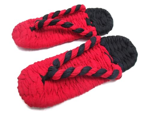 [わらじぐみ] 布ぞうり 赤と黒無地コンビねじり鼻緒 (W-12B) Sサイズ(22cm)の高価買取ITEM