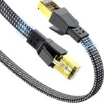 SWECENT CAT8 LANケーブルは、1.5mで超高速40Gbps/2000MHzに対応。遅延ゼロ、爪折れ防止のRJ45コネクタ、シールド設計により、PS5やXbox Series Xに最適。オンラインゲームや4K配信に最適な高性能ケーブルです。