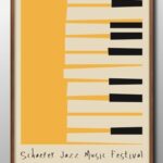 ジャズピアノをテーマにしたA3サイズのおしゃれな絵画。北欧風のデザインで、マット紙に艶消し仕上げ。インテリアとしての壁掛けに最適。新築祝いなどのギフトにもおすすめのアートパネルです。