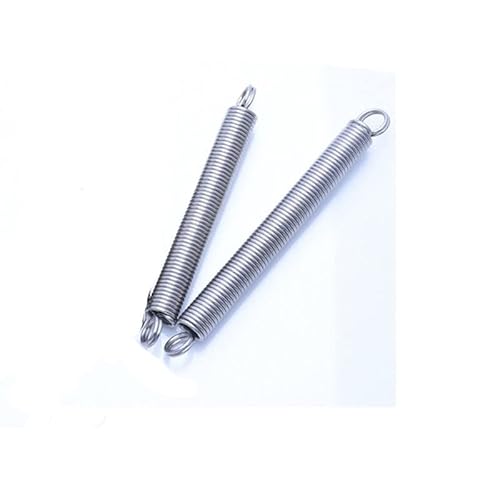 引張りばねは円筒形ヘリカルタイプで、線径は0.3mm、全長は85mm(50個入り)、強度が高く耐久性があります。引き戻しばねやドラフトばねとしても使用可能。