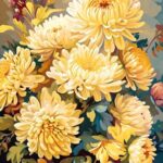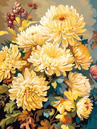 数字キットによる油絵。初心者の大人がキャンバスに番号でペイント。DIYアート、フレームレス。インテリアや壁飾りに最適。菊の花 O-242のデザイン。