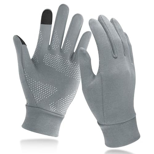 Unigearのランニンググローブは、防寒・吸湿・通気性に優れ、3D立体裁縫でフィット感が抜群。スマホタッチパネル対応、滑り止め加工でしっかり握れる。秋冬のアウトドアに最適なグレーのMサイズ。
