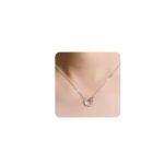 Mesaroのレディースネックレス。ジルコンを使用したメビウスデザインで、金属アレルギー対応。チェーンは長さ調節可能で、シルバーとピンクゴールドの色展開。カップル向けのシンプルでおしゃれなファッションアイテム。プレゼントにも最適です。