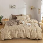 Catonliferの布団カバー4点セットは、シングルサイズ、肌に優しい素材を使用。和風シンプルなデザインの掛け布団カバー、フラットシーツ、枕カバー、チェック柄プリント。洗えるのでお手入れ簡単。