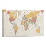 特大の英語版ワールドマップポスターです。サイズは16×24インチ(40x60cm)。壁画アートとして、キャンバス印刷された美しいデザイン。誕生日ギフトやホーム装飾にも最適。