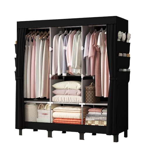 PSHUN RIGHの簡易ポータブル組立クローゼットは、防湿・防塵・防カビの不織布製。130cm幅で多層収納を提供し、寮や寝室に最適な服収納キャビネットです。